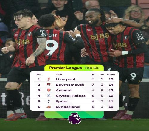 伯恩茅斯连续六轮不败暂升至英超第二,创队史最佳开局