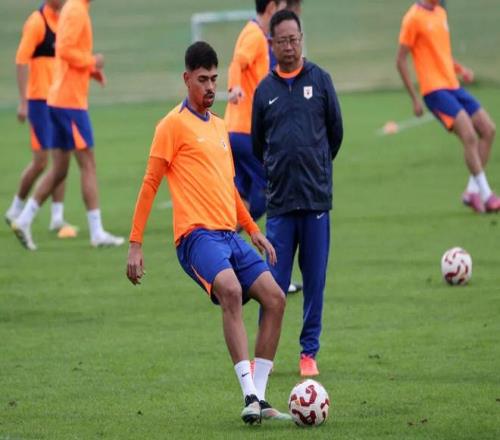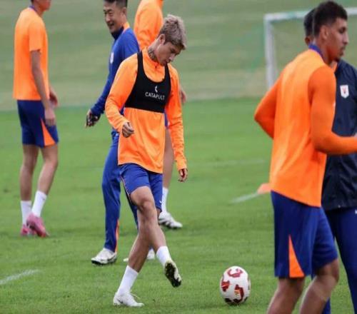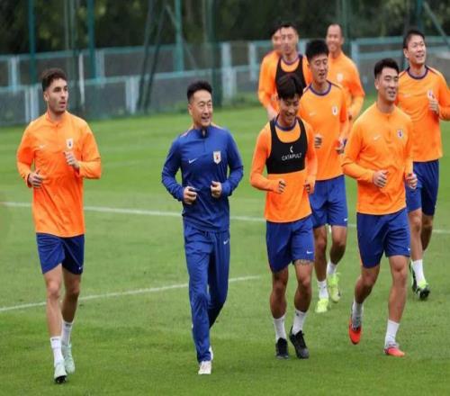 山东泰山队备战主场与云南玉昆队的中超联赛