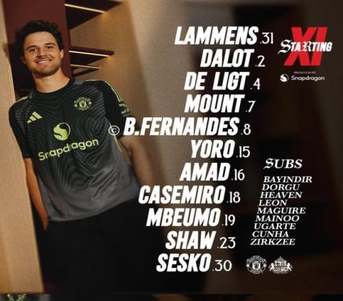 本周六英超第7轮,曼联主场迎战升班马桑德兰。赛前红魔公布首发阵容,夏窗新引进的比利时门将拉芒获得首秀机会。具体首发如下:拉芒/约罗、德利赫特、卢克·肖/阿马德·迪亚洛、卡塞米罗、布鲁诺·费尔南德斯、达洛特/姆伯莫、芒特/舍什科