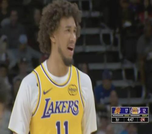 湖人今年NBA季前赛首秀,海斯替补约17分钟,投篮2中1,罚球6中5贡献7分5板(2前场板)1助1断2帽,然而球队81-103惨败太阳。
