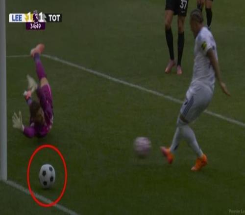 英超联赛出现了令人难以置信的一幕,在利兹联对阵热刺的比赛中,最终热刺以2比1取胜。上半场第34分钟,前米兰球员奥卡福尔突破维卡里奥攻入扳平比分的一球,但就在那一刻,场上竟然出现了一个沙滩足球。