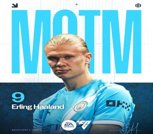 打入全场唯一进球,哈兰德当选曼城10布伦特福德全场最佳