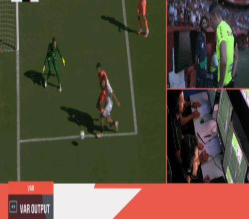 皇马昨天先赛击败强敌比利亚雷亚尔及时止住颓势暂时夺回了榜首,巴萨今天作客皮斯胡安球场,必须得拿下塞维利亚才能再次超过皇马登顶。开场后塞维利亚就给巴萨很强的阻力,仅仅9分钟,塞维利亚前场左侧边线球机会,巴尔加斯大力往门前掷过去,罗梅罗小禁区处倚住阿劳霍凌空将球卸下,随后罗梅罗转身突破,阿劳霍在已经卡住角度的情况下多余伸出脚将罗梅罗绊倒,主裁亲自观看VAR后吹罚了点球。曼联旧将桑切斯操刀主罚一蹴而就,塞维利亚1:0取得梦幻开局。