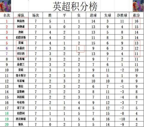 英超最新积分战报3胜1平!曼城超切尔西升至第5仍差阿森纳3分