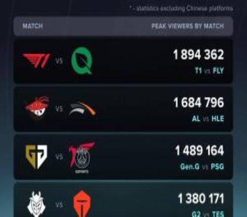 体育资讯10月16日称 昨日瑞士轮首轮的比赛已经全部结束了,而今日凌晨外媒数据平台公布了昨日海外收视率前四的统计:其中T1以将近190万的收视人数遥遥领先。