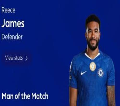 最终经过英超官网球迷投票,里斯-詹姆斯以43%的得票率当选全场最佳球员。