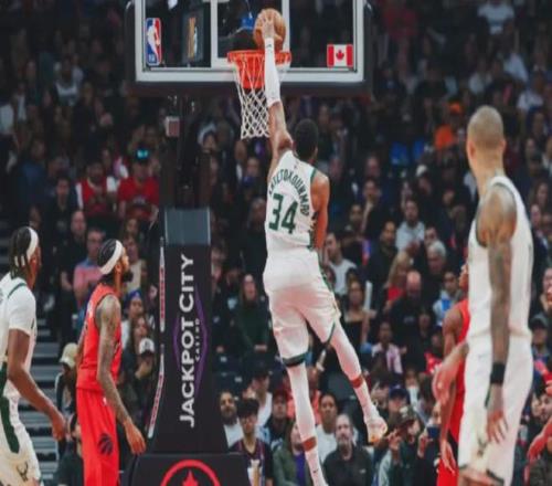 雄鹿今天客战猛龙,字母哥发挥非常抢眼。