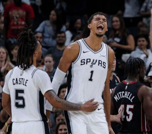 和雷霆一样保持不败金身的球队还有马刺队,后者今天在主场107-101战胜热火,豪取5连胜,这是他们队史最佳开局。文班亚马23投10中贡献了27分18篮板6助攻5封盖,今年是文班亚马在联盟的第三个赛季,取得了飞跃的进步,是MVP、进步最快球员奖,最佳防守球员,盖帽王等荣誉的热门候选之一。