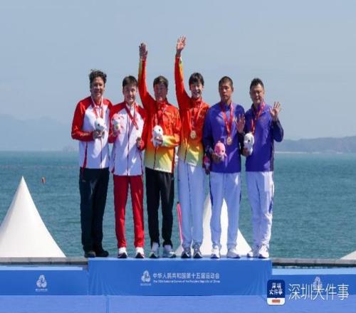 2025年11月6日,第十五届全运会马拉松游泳比赛男子组决赛,湖北队选手张子扬以1小时59分55秒3的成绩夺得冠军,山东队选手刘培鑫和福建队选手兰天辰分别获得亚军和季军。