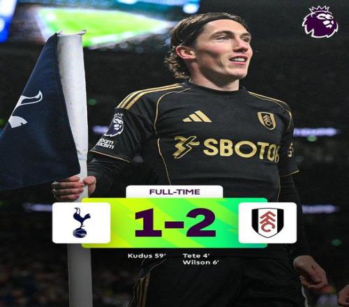 北京时间11月30日04:00,英超联赛第13轮,热刺坐镇主场迎战富勒姆。上半场,泰特、威尔逊2分钟2球。易边再战,库杜斯爆射建功。最终热刺1-2富勒姆。积分榜方面,热刺18分第10,富勒姆17分第15。