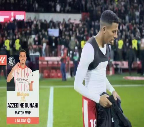 西甲第14轮,赫罗纳主场1-1战平皇家马德里,此役打入一球的欧纳希当选西甲官方全场最佳球员。