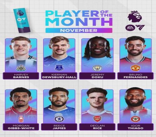 官方:阿尔特塔被提名为了英超11月最佳主帅候选。