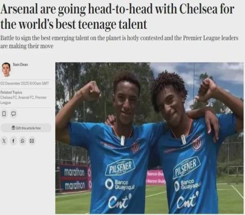 官方:阿森纳宣布和厄瓜多尔球队山谷独立就16岁双胞胎兄弟埃德温-金特罗和霍尔格-金特罗的转会达成了协议,2人将在2027年夏天年满18周岁后正式加盟。